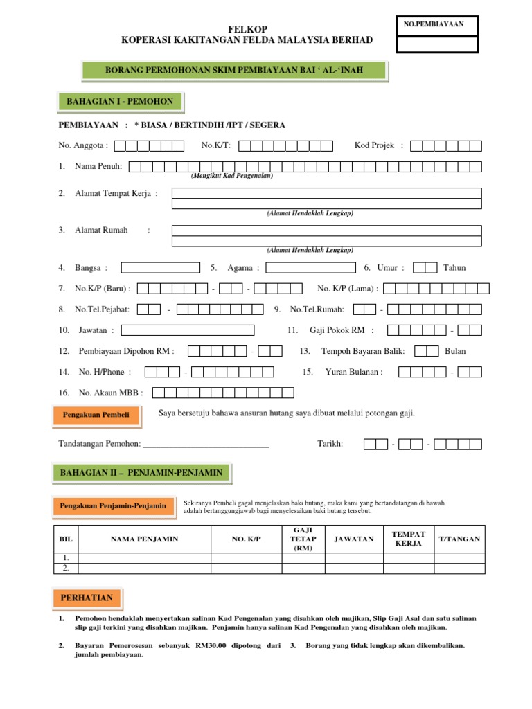 Borang Permohonan Skim Pembiayaan Tawarruq Felkop Pdf Free Download